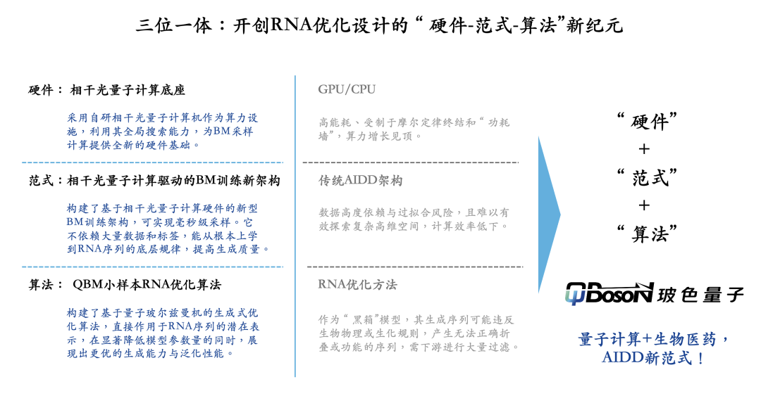 三位一体:开创RNA优化设计,“硬件-范式-算法”新纪元在生态合作上,玻色量子还与广州国家实验室、上海交通大学、中山大学药学院、北京肿瘤医院、清华长庚医院等在蛋白质结构预测、分子相似性筛选、多肽对接、变构位点预测等场景展开实用化量子计算应用探索。此外,玻色量子构建了“药企-高校-医院-国家实验室”四位一体合作体系,未来与顶级高校、医院及药企携手展开深度合作,推动生态共建,共享量子算力与数据资源,加速推进药物开发和临床验证的进程。